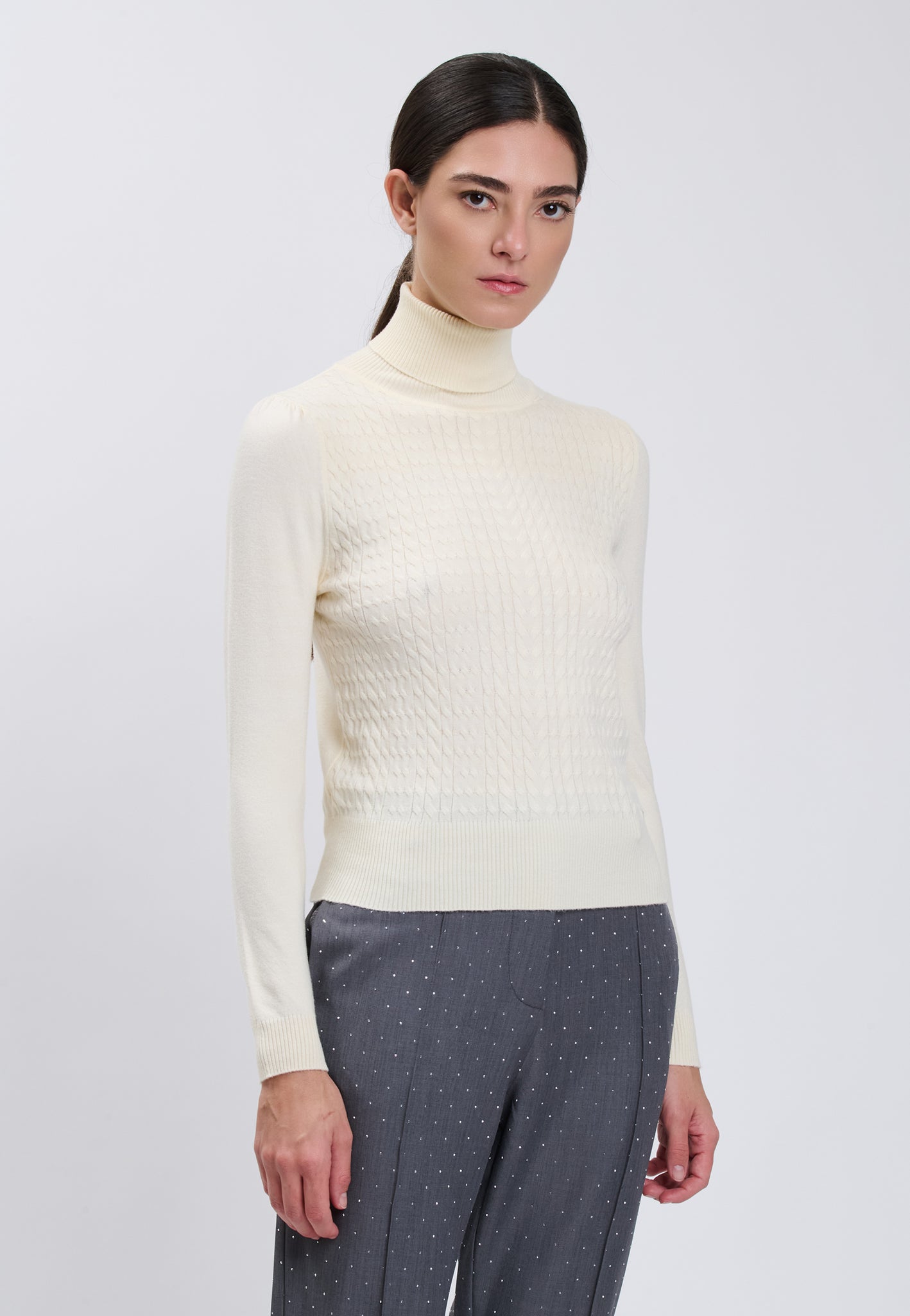 Tra influenze preppy e spirito casual, lo stile è sia strutturato che disinvolto. Questo maglione in maglia a trecce presenta un look sia accogliente che strutturato. Il colletto alto e gli orli a costine delineano un look senza tempo.