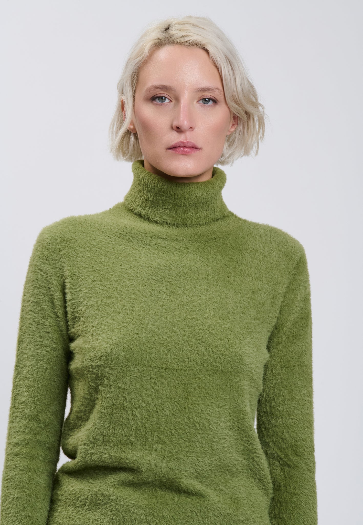 Nuovo capo essenziale del guardaroba, questo maglione con effetto pelo crea una silhouette comoda e pratica. Collo alto e regular fit, così versatile da poter essere indossata su qualsiasi cosa.