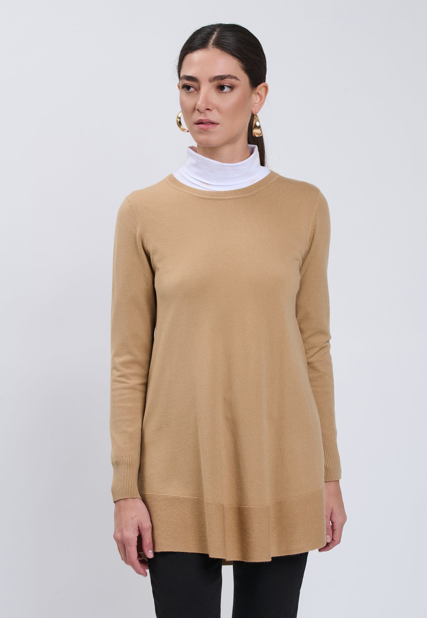 Questo maglione, realizzato in un caldo filato misto viscosa, è caratterizzato da un taglio oversize impreziosito da un orlo con lavorazione a costine orizzontali. Grazie alla sua lunghezza midi, è ideale da indossare sopra una camicia, leggings e stivali da equitazione per un look comodo e di tendenza.