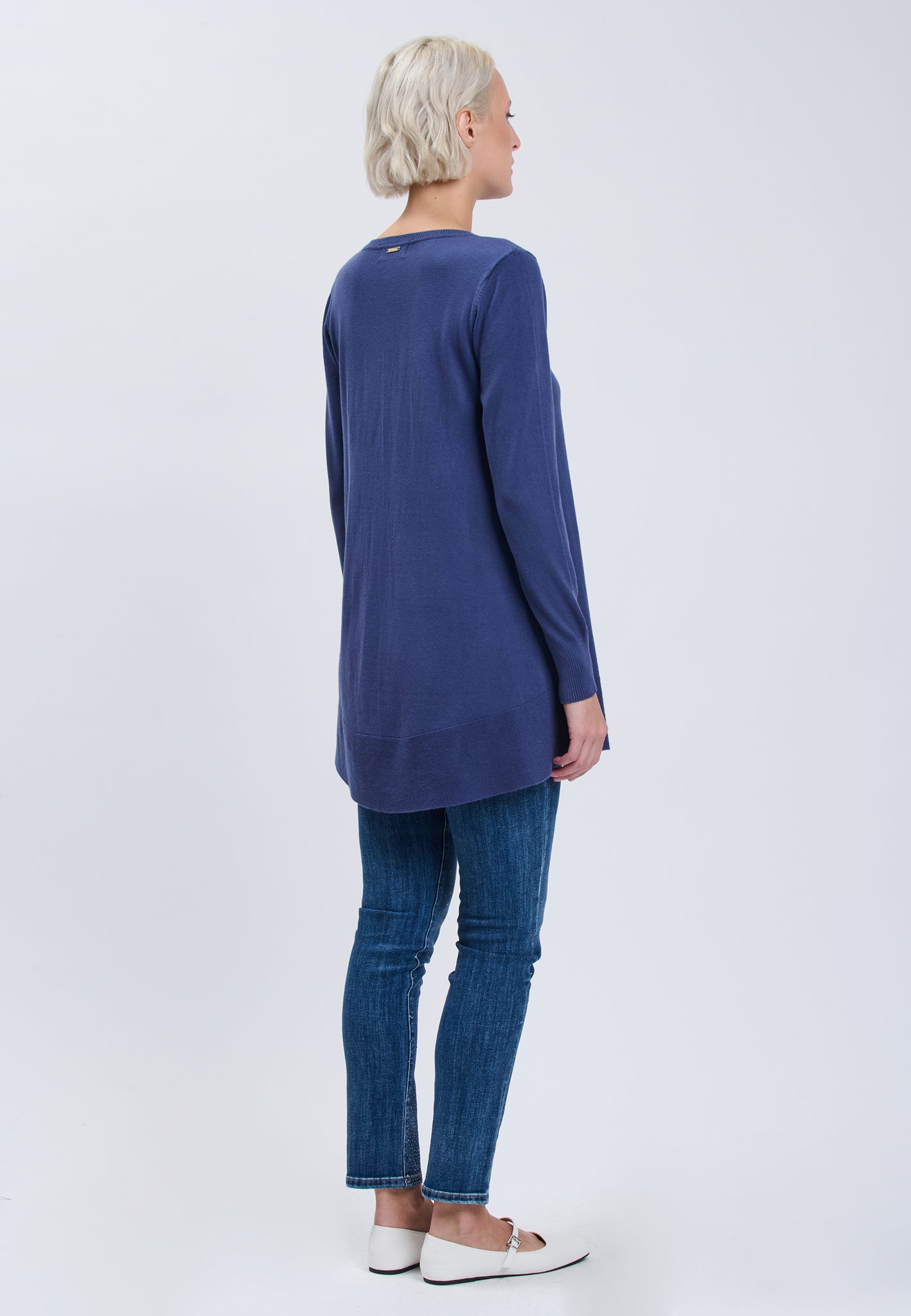 Questo maglione, realizzato in un caldo filato misto viscosa, è caratterizzato da un taglio oversize impreziosito da un orlo con lavorazione a costine orizzontali. Grazie alla sua lunghezza midi, è ideale da indossare sopra una camicia, leggings e stivali da equitazione per un look comodo e di tendenza.