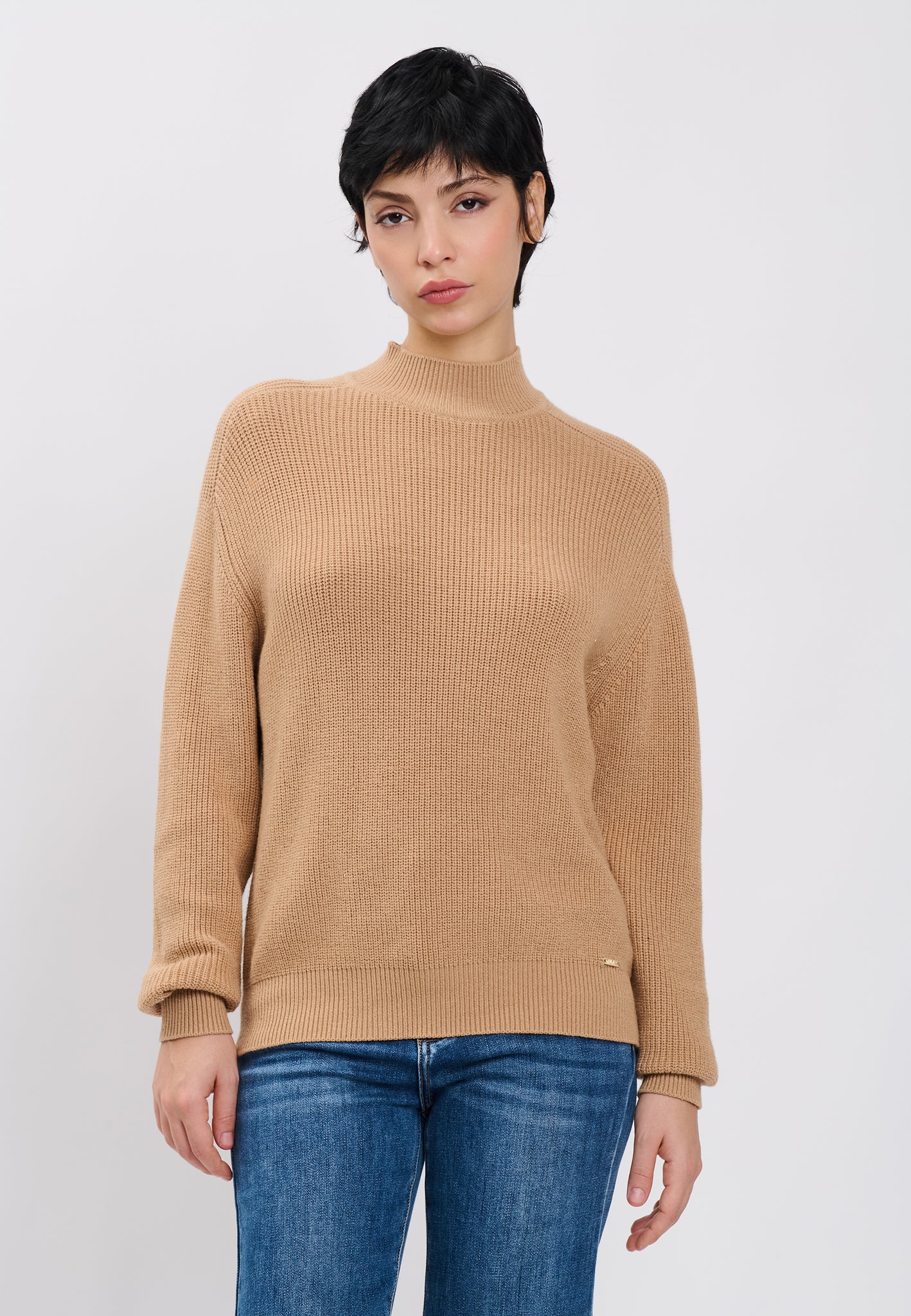 Realizzato in un caldo filato misto viscosa e lurex, questo pullover presenta un colletto rialzato e spalle scese, che esalta la tua silhouette con un'eleganza intramontabile. Il taglio over riscalda delicatamente il tuo look strutturato.