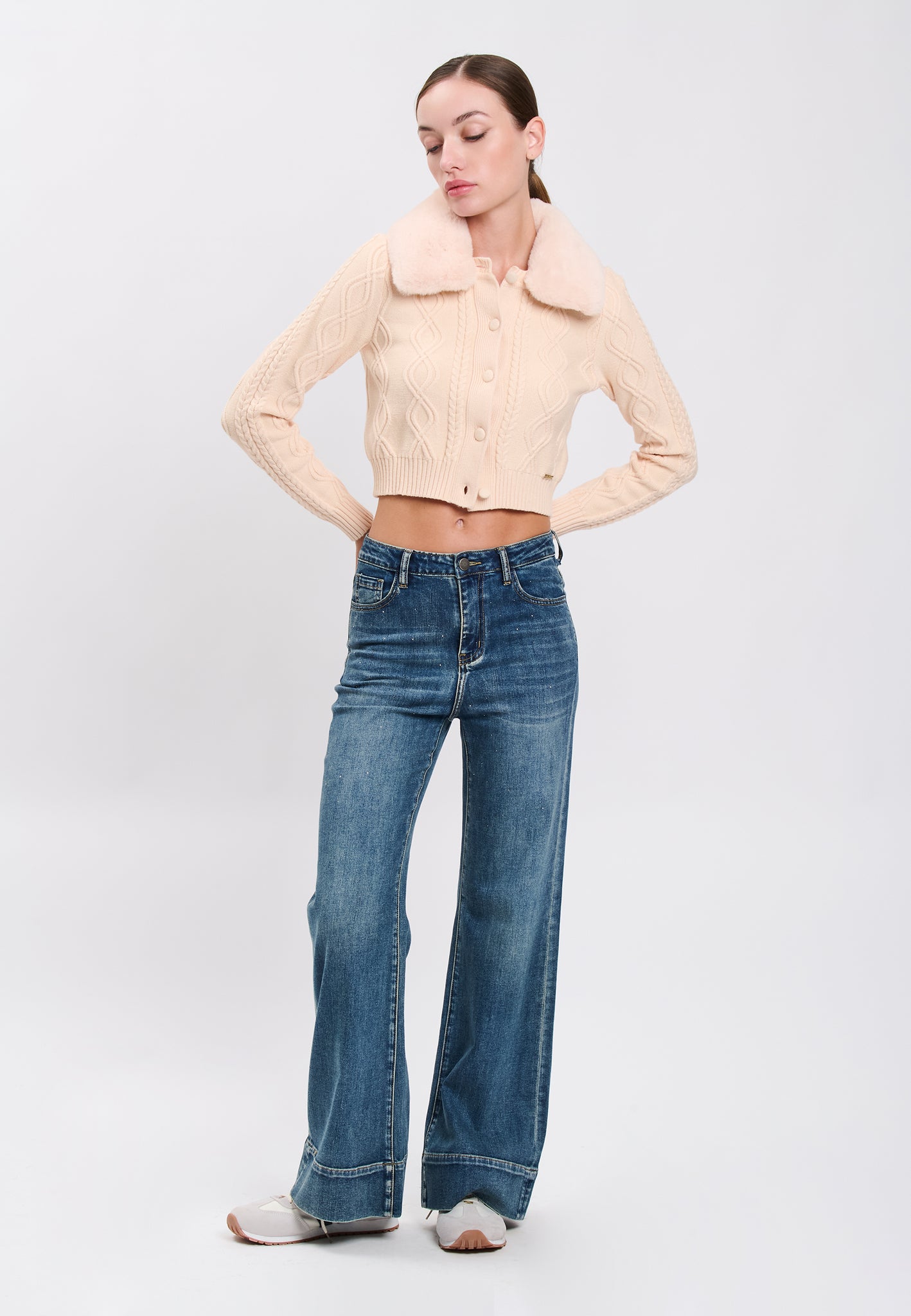 Una silhouette slanciata, uno spirito marcatamente vintage e un dettaglio luminoso: questi jeans flared modernizzano i capi essenziali con finezza e splendore, impreziositi da piccoli strass su tutto il capo.