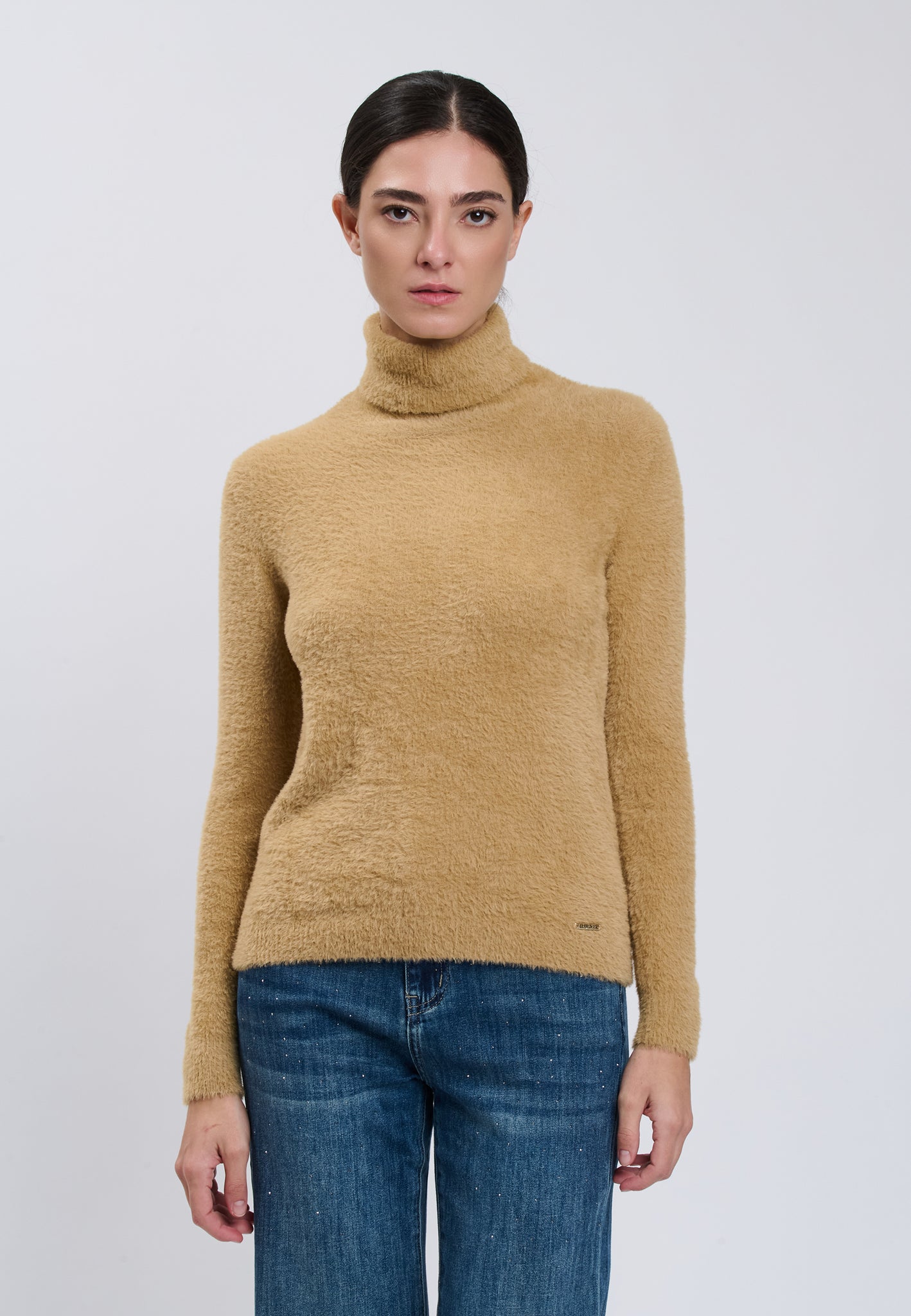 Nuovo capo essenziale del guardaroba, questo maglione con effetto pelo crea una silhouette comoda e pratica. Collo alto e regular fit, così versatile da poter essere indossata su qualsiasi cosa.