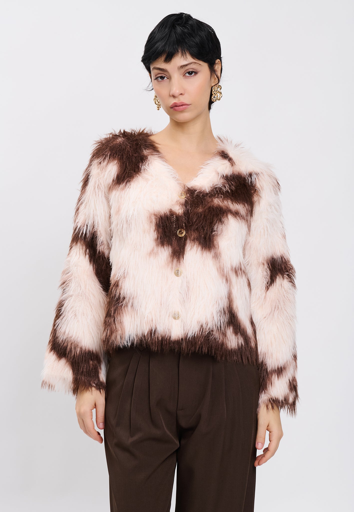 Capo coccola per eccellenza, questo cardigan a pelo lungo impone il suo stile. Il suo tessuto infinitamente morbido presenta una fantasia astratta a macchie di colore, mentre i bottoni logo dorati e la scollatura a V ne rafforzano l'allure vintage. Scegli un total look glamour con un paio di pantaloni sartoriali e décolleté.
