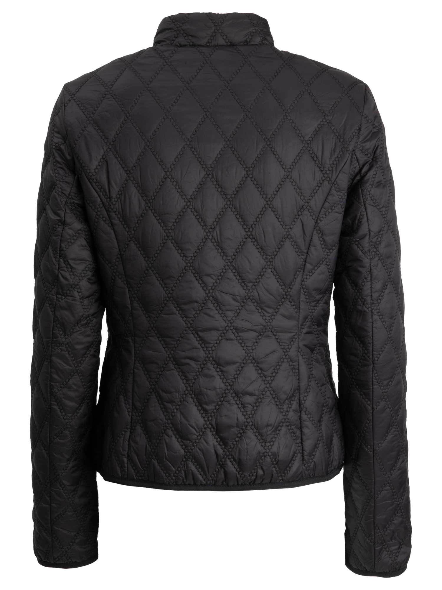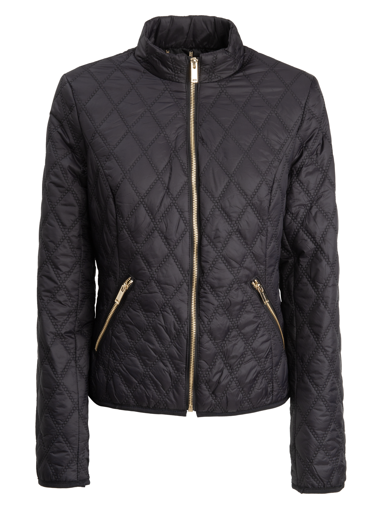 Una giacchetta mezza stagione dall'elegante motivo trapuntato a losanghe, con un taglio slim fit che valorizza la figura. Le zip a contrasto ravvivano la silhouette con un tocco di lucentezza. Un capo di carattere, intramontabile, perfetto per qualsiasi occasione della bella stagione.