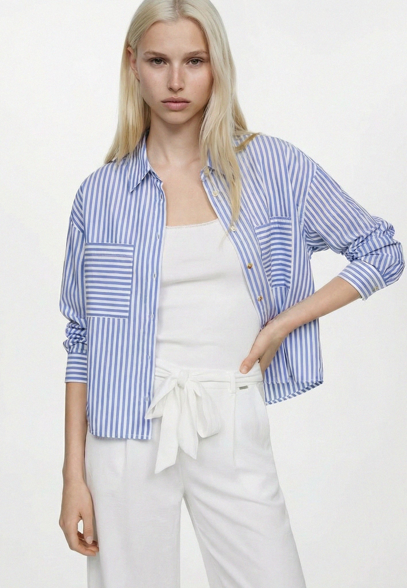 Oppure indossali con un top bianco sotto una camicia boxy a righe e dei sandali bassi per un look decisamente chic in vacanza.