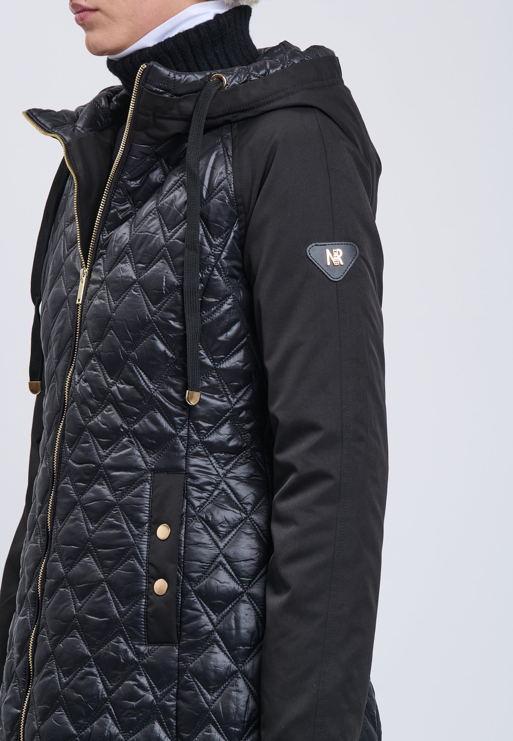 Questo piumino, con maniche raglan e taglio princess, afferma uno stile forte e deciso. Dettagli di ispirazione militare, cappuccio, trapuntatura a rombi: ogni elemento gioca sui contrasti per disegnare un look contemporaneo. Perfetto per affrontare l'inverno con praticità e stile.