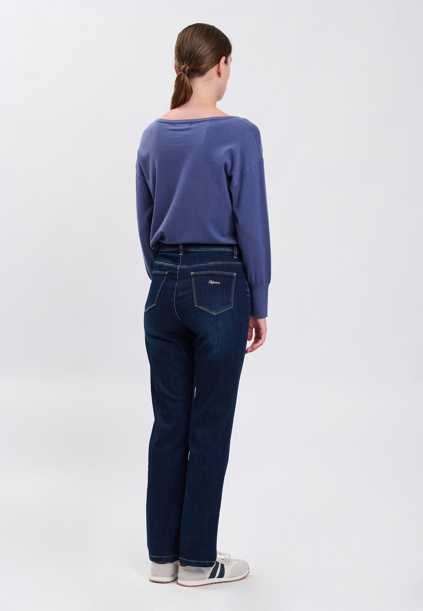 Questi jeans bootcut leggermente svasati affermano il loro stile con le impunture in netto contrasto e il lavaggio dark blue. Un capo strutturato e versatile, perfetto per ogni esigenza di look.